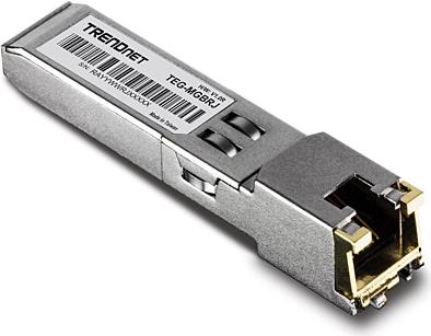 Das 1000BASE-T-RJ-45-Kupfer-SFP-Modul von TRENDnet, Modell TEG-MGBRJ, konvertiert einen Standard-SFP-Slot zu einem RJ-45-Gigabit-Port für eine zusätzliche Kupferverbindung. Dieses SFP-Modul funktioniert mit einem Standard-SFP-Slot, wie man ihn für gewöhnlich in Netzwerk-Switchen und Glasfasermedienkonvertern findet. Sparen Sie Ausrüstungskosten, indem Sie den ungenutzten SFP-Slot eines Switches für eine Kupferverbindung nutzen.