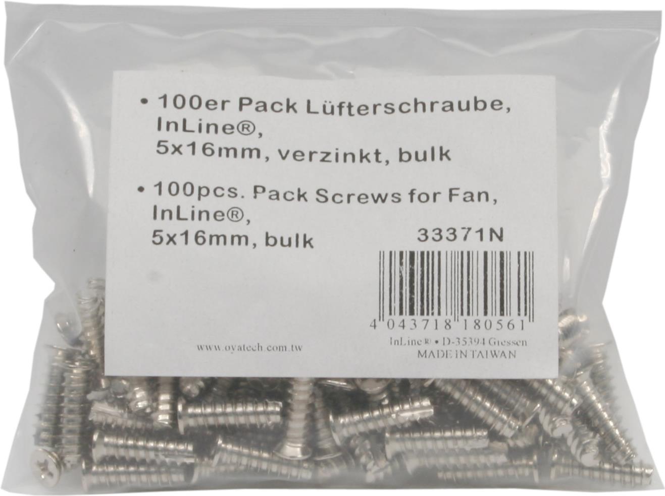 100er Pack Lüfterschraube, InLine®, 5x16mm, vernickelt (33371N)