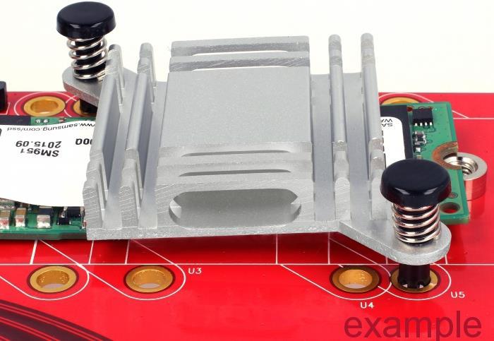Dieses Schnappnieten Set von Delock dient zur Befestigung von einem Kühlkörper auf der Platine.