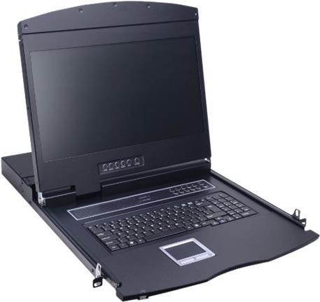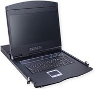 Die VALUE 19\"-Konsole kombiniert die Funktion einer Tastatur, eines Touchpads und eines 48cm-(19\"-)TFT Monitors in einem 1HE-Gehäuse zum Einbau in einen 19\"-Schrank • Die preiswerte Lösung für das professionelle Server-Management • Teleskopschienen • Tastatur mit breiter Handauflagefläche • Sicheres Einrasten des Einschubs Bildschirmdaten: • Aktive 48 cm-Matrix TFT • Maximale Auflösung: 1.366 x 768 Pixel • Kontrast: 1000:1 • Helligkeit: 250cd/m Tastatur-Layout: Deutsch • Einbautiefe: 600-1000 mm.