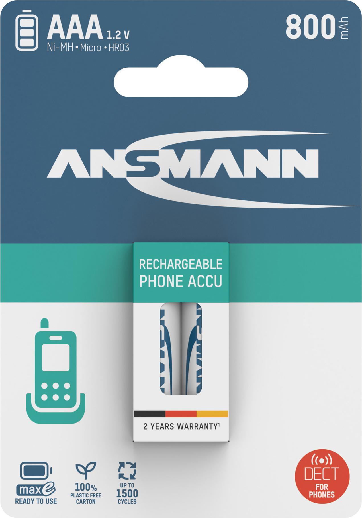 • 1x2 Ansmann Akku NiMh Micro 800 mAh f. Dect (5035332)
