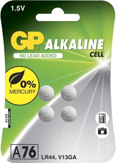 Für Uhren, Wecker und Taschenrechner, aber auch für kleinere Taschenlampen und Laserpointer sind die Knopfzellen von GP unentbehrlich. Die GP A76-Alkaline-Knopfzelle mit 1,5 Volt hat eine Kapazität von 105 mAh. Die Batterie hat einen Durchmesser von 11,6 mm, ist 5,4 mm dick und garantiert quecksilber- und bleifrei. Diese Alkaline-Knopfzelle mit der Bezeichnung A76 eignet sich als Ersatz für Batterien mit den Bezeichnungen LR44 und V13GA.