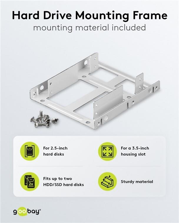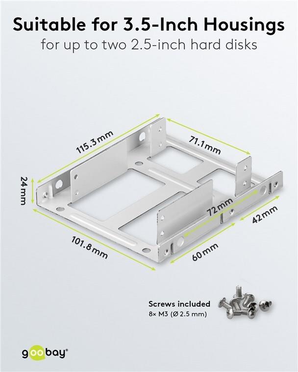 Wentronic Goobay Doppelter Festplatten-Einbaurahmen 2.5" auf 3.5", Silber - geeignet für den Einbau von bis zu zwei 2.5" Festplatte in einen 3.5" Gehäuseschacht (95875)