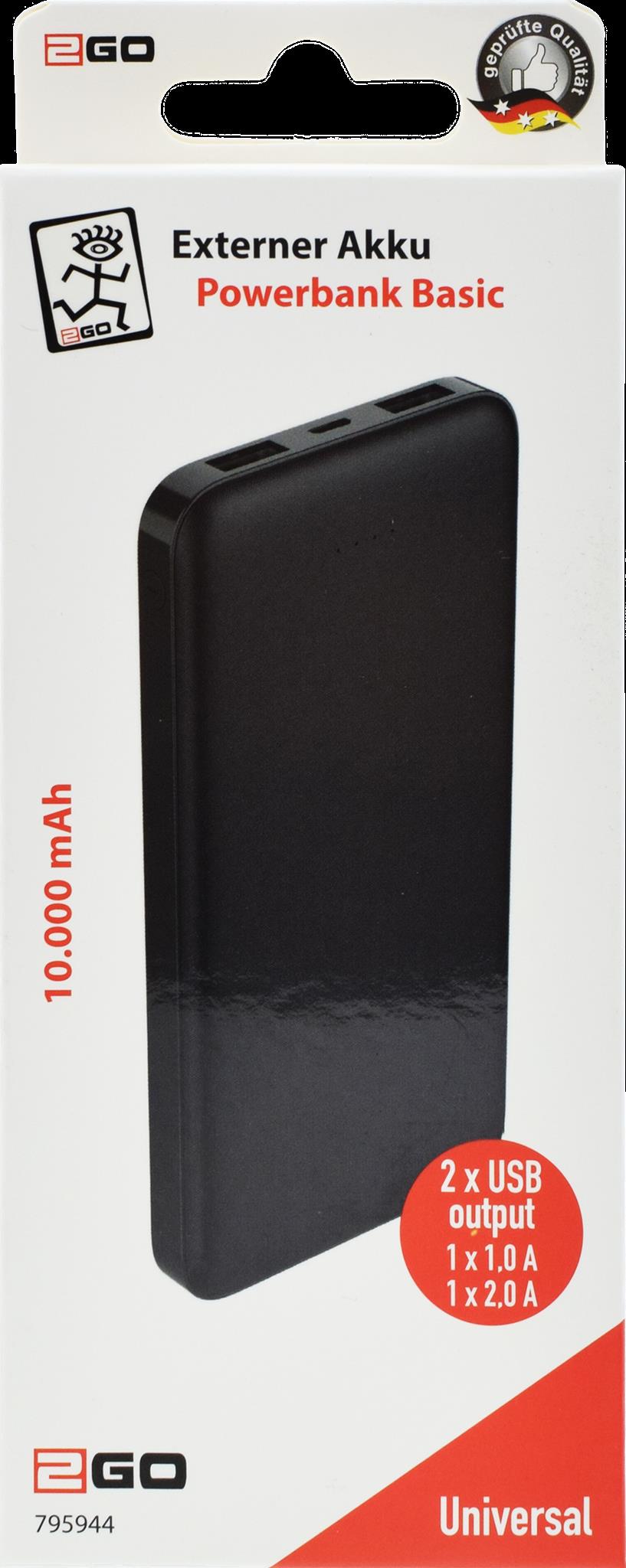 2GO 795944 Powerbank Lithium Polymer (LiPo) 10000 mAh Schwarz (795944)