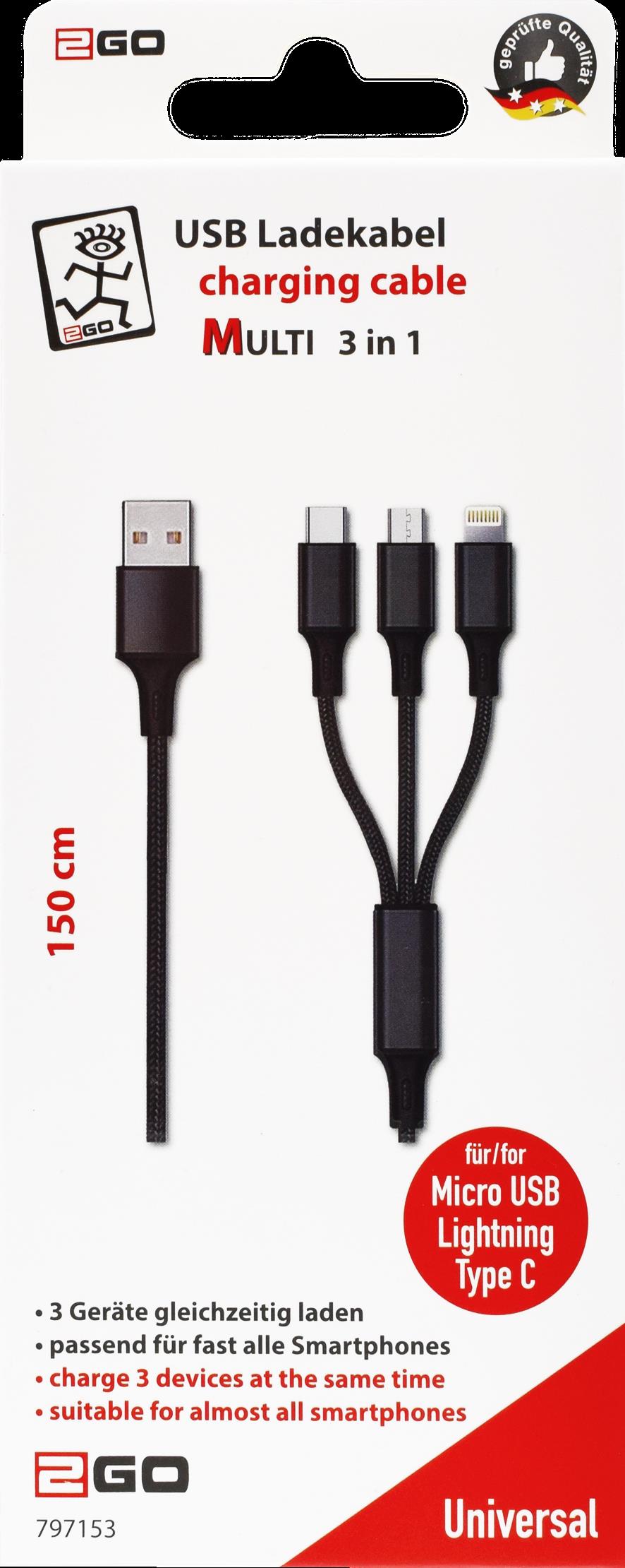 2GO 797153 USB Kabel 1,5 m USB B USB C/Micro-USB B/Lightning Schwarz (797153)