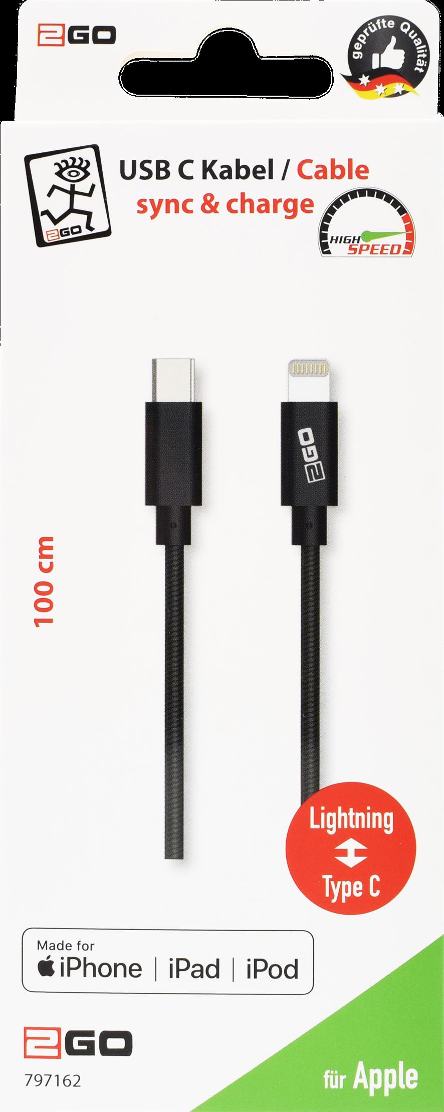 2GO 797162 USB Kabel 1 m USB C Lightning Schwarz (797162)