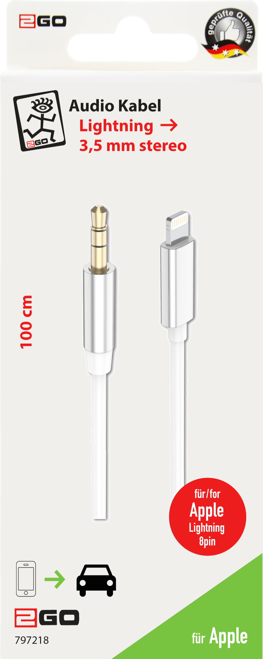 2GO 797218 Audio-Kabel 1 m 3.5mm Lightning Weiß (797218)