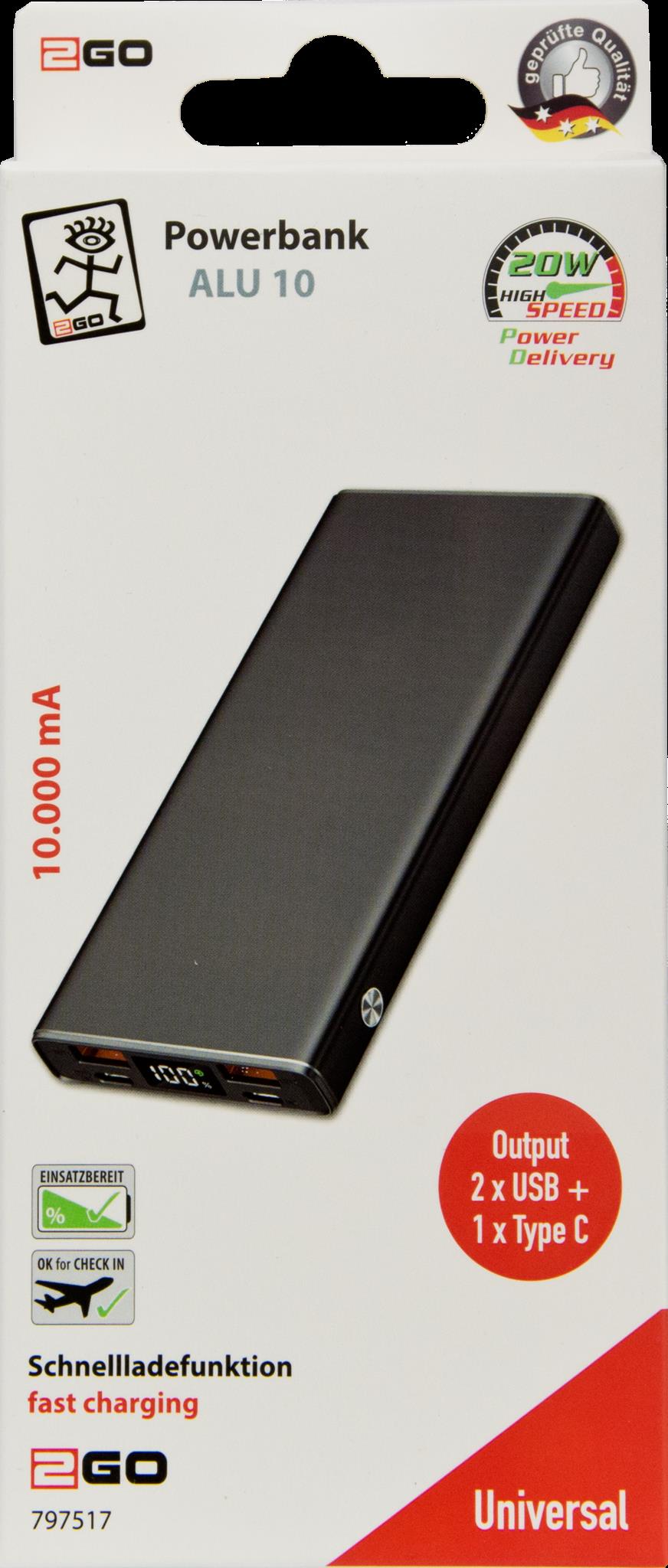 2GO 797517 Powerbank 10000 mAh Schwarz (797517)