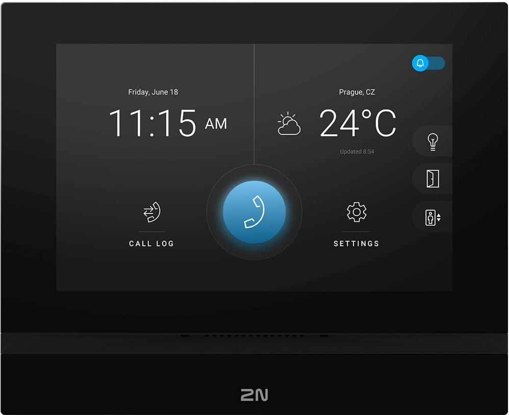 Eine Eigenschaft der Innensprechstelle 2N Indoor View ist das Weitwinkel-Touchdisplay. Die Oberfläche aus gehärtetem Glas und das ausgezeichnete Design passen perfekt zu luxuriösen Wohnprojekten. Für die Installation benötigen Sie lediglich ein UTP-Kabel und eine Installationsdose für die Unterputz- oder die Halterung für die Aufputz-Montage.