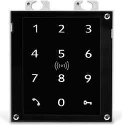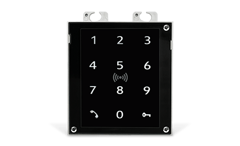 Ein Modul für die Türsprechanlagen 2N IP Verso und 2N LTE Verso, das eine kapazitive Tastatur mit einem Leser für geschützte RFID-Karten kombiniert. Dank dem Multifrequenz-RFID-Leser kann dieses Modul ein breites Spektrum von RFID-Karten lesen, von den nicht geschützten 125-kHz-Karten über intelligente 13,56-MHz-Träger bis zu den geschützten 13,56-MHz-Karten. Außerdem kann die Tastatur für den Zutritt über PIN-Code und für einen erhöhten Schutz eingesetzt werden.