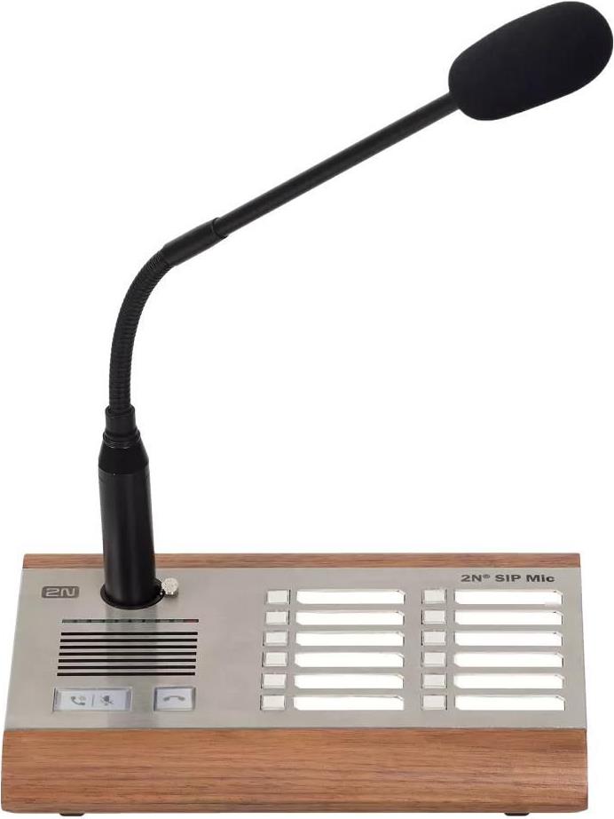 Die 2N SIP Mic ist eine komplette Zweiwegemikrofon-Konsole in einer Einheit. Zum Lieferumfang gehören ein hochwertiges Schwanenhalsmikrofon, zwölf konfigurierbare Tasten und ein integrierter Server für die Audioverwaltung. Sie benötigen weder einen separaten Server noch einen Zeitgeber, denn alles Erforderliche ist bereits in der Konsole enthalten. Die Konsole 2N SIP Mic lässt sich über ein Standardnetzwerk mit PoE leicht in Ihre AXIS-Netzwerklautsprecheranlage integrieren.