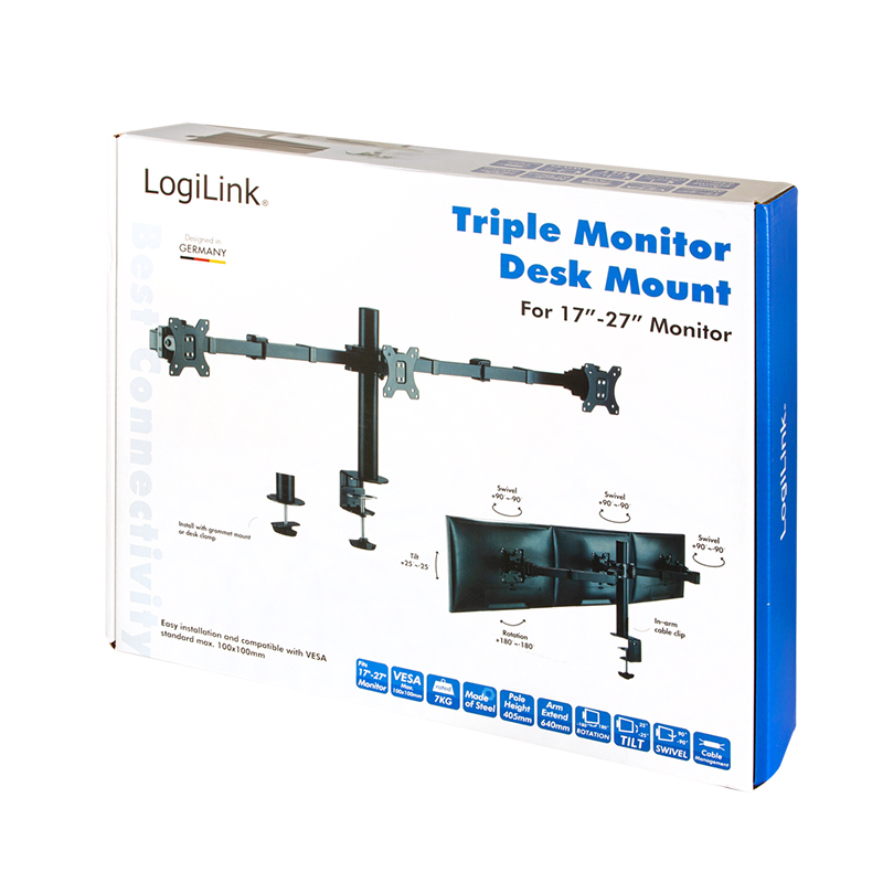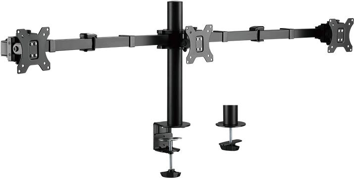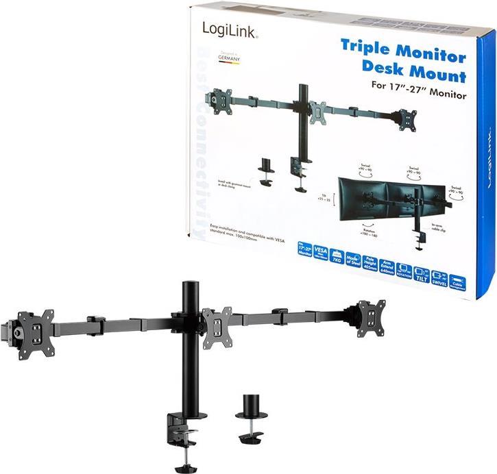 Logilink - Befestigungskit (Stange, Klammer, 2 Gelenkarme, Kabeldurchführungsklemme) - für 3 LCD-Anzeigen - Stahl - Schwarz - Bildschirmgröße: 43.2-68.6 cm (17"-27") - Tischmontage (BP0107)