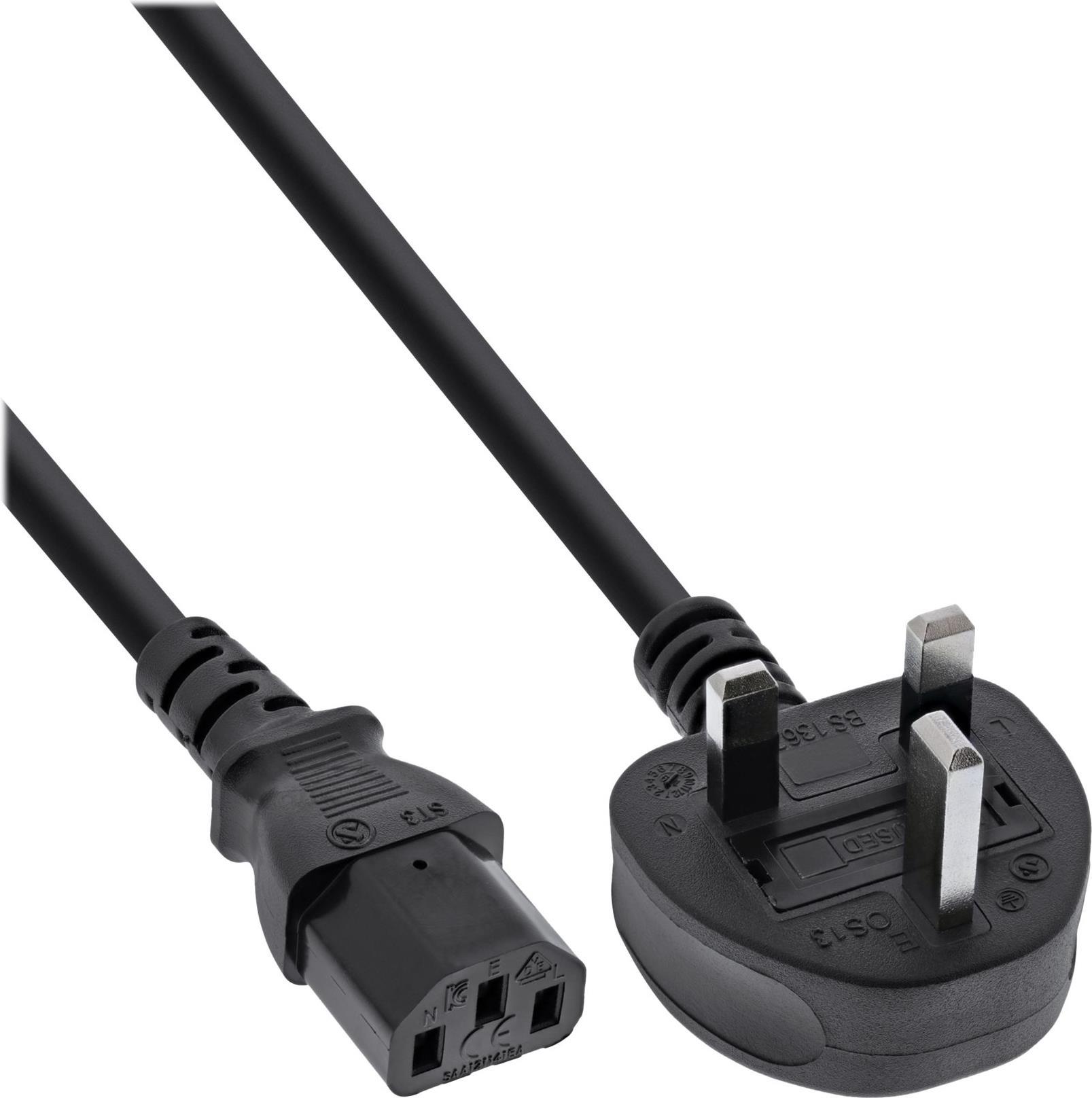 InLine - Stromkabel - BS 1363 (S) zu power IEC 60320 C13 - Wechselstrom 250 V - 7 A - 1,8m - Schwarz - Großbritannien (Packung mit 30) (B-16652E)
