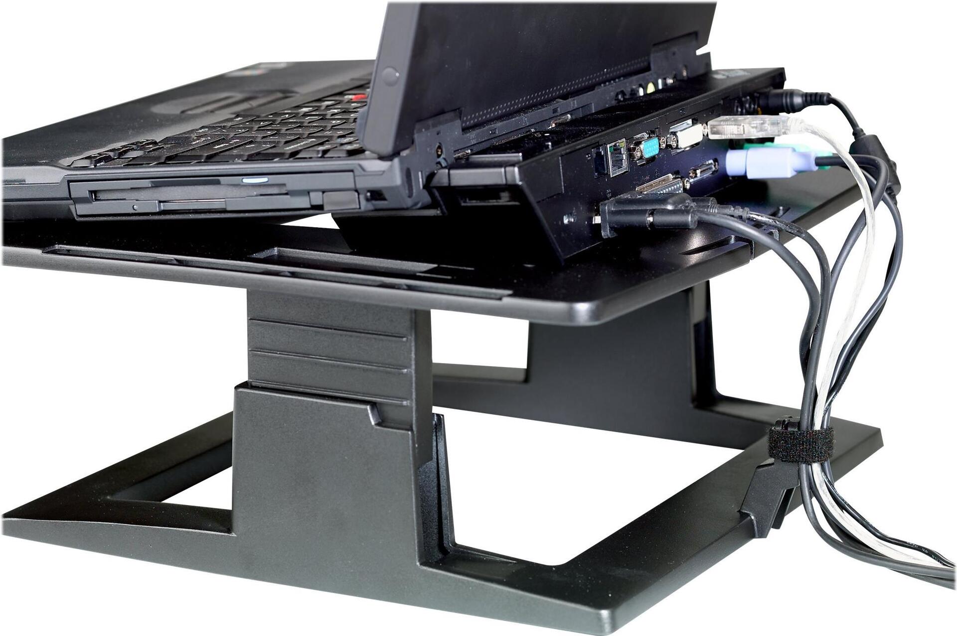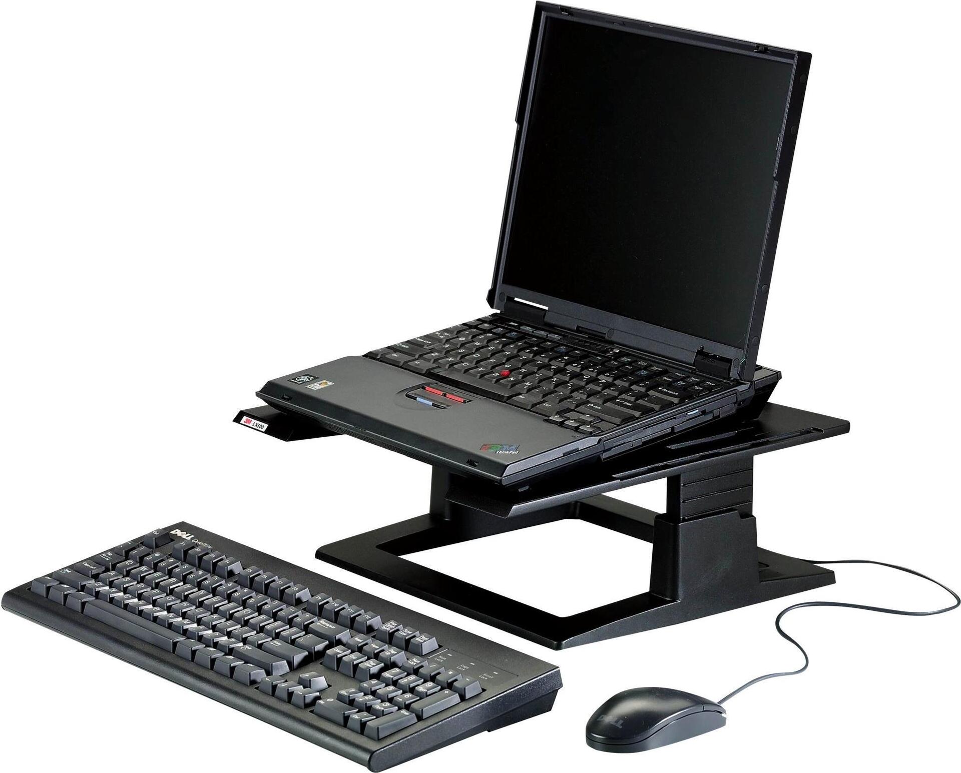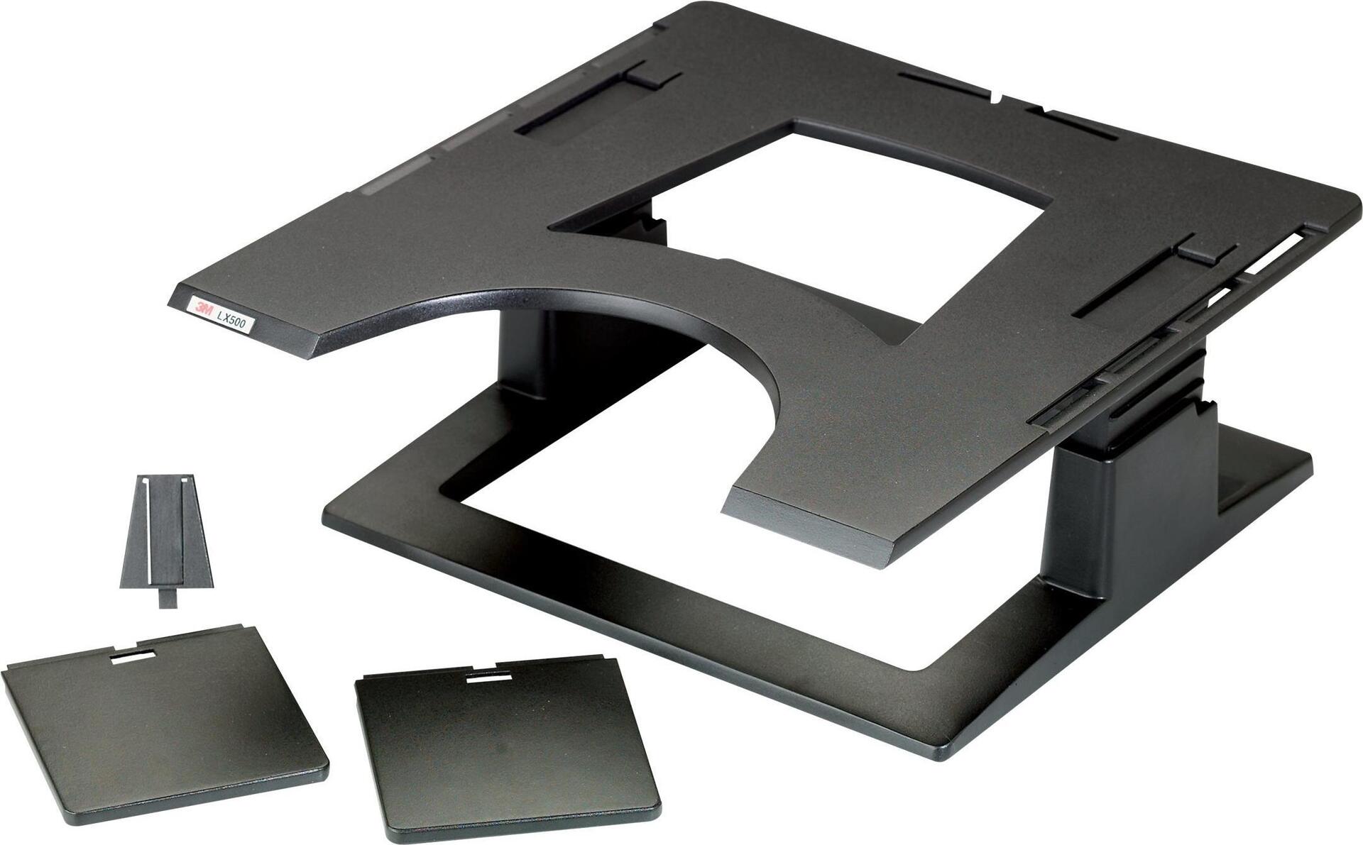 Der 3M Notebookständer bringt Ihren Laptop-Bildschirm auf eine komfortablere Sichthöhe und entlastet so Nacken und Augen. Er ist höhenverstellbar und stabil gebaut. Der Laptophalter eignet sich ideal für Laptops oder Docking-Stationen, um den Bildschirm beim Einsatz von externen Tastaturen zu erhöhen. Zudem sorgt er für mehr Platz auf dem Schreibtisch sowie Ordnung bei der Kabelführung. Besonders praktisch: Zwei Befestigungsplatten für PC-Zubehör und eine Befestigung für den 3M Konzepthalter sind bereits inklusive.
