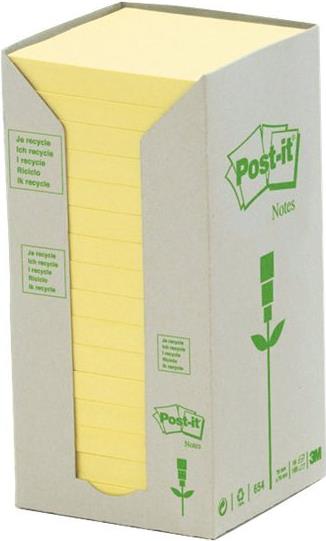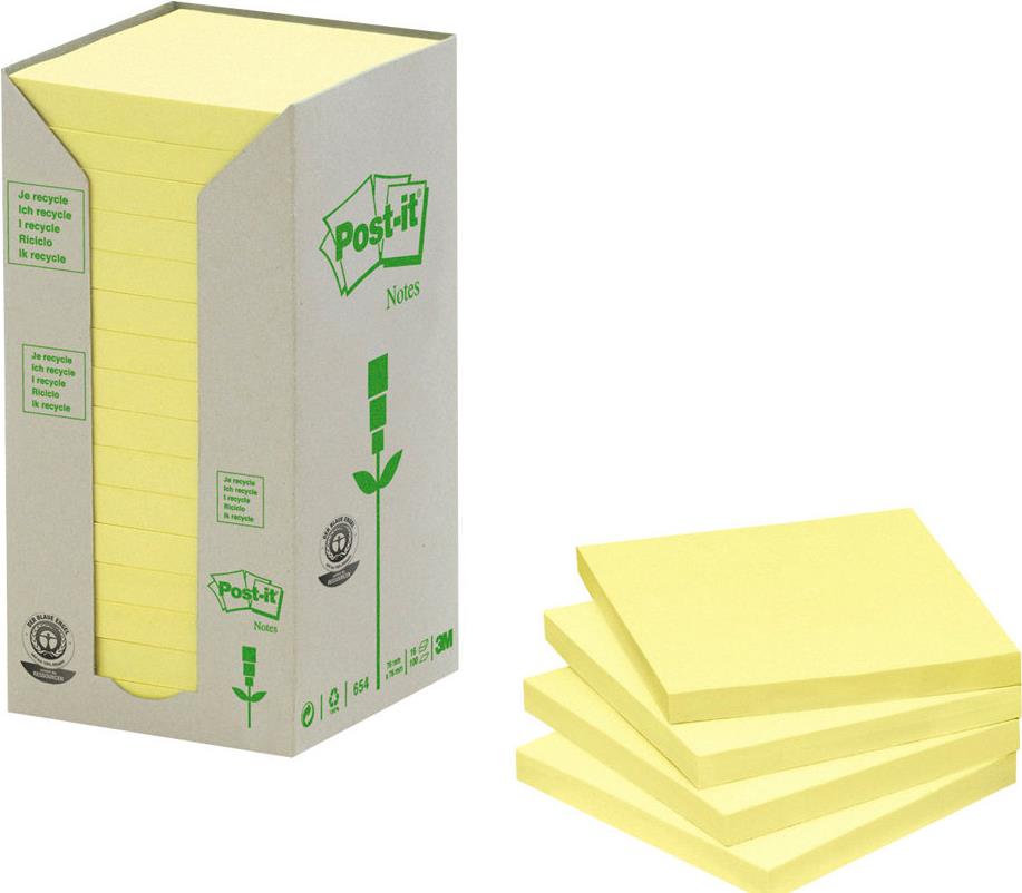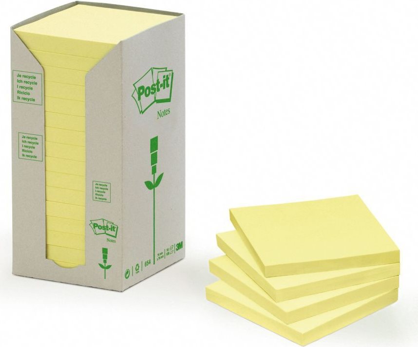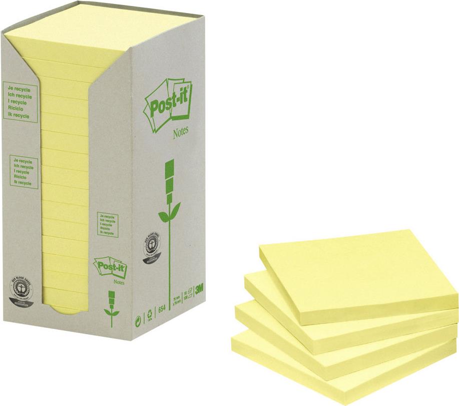 3M Post-it Recycling Notes Haftnotizen, 76 x 76 mm, gelb 100 Blatt-Block, aus 100% recyceltem Papier (654-1T)