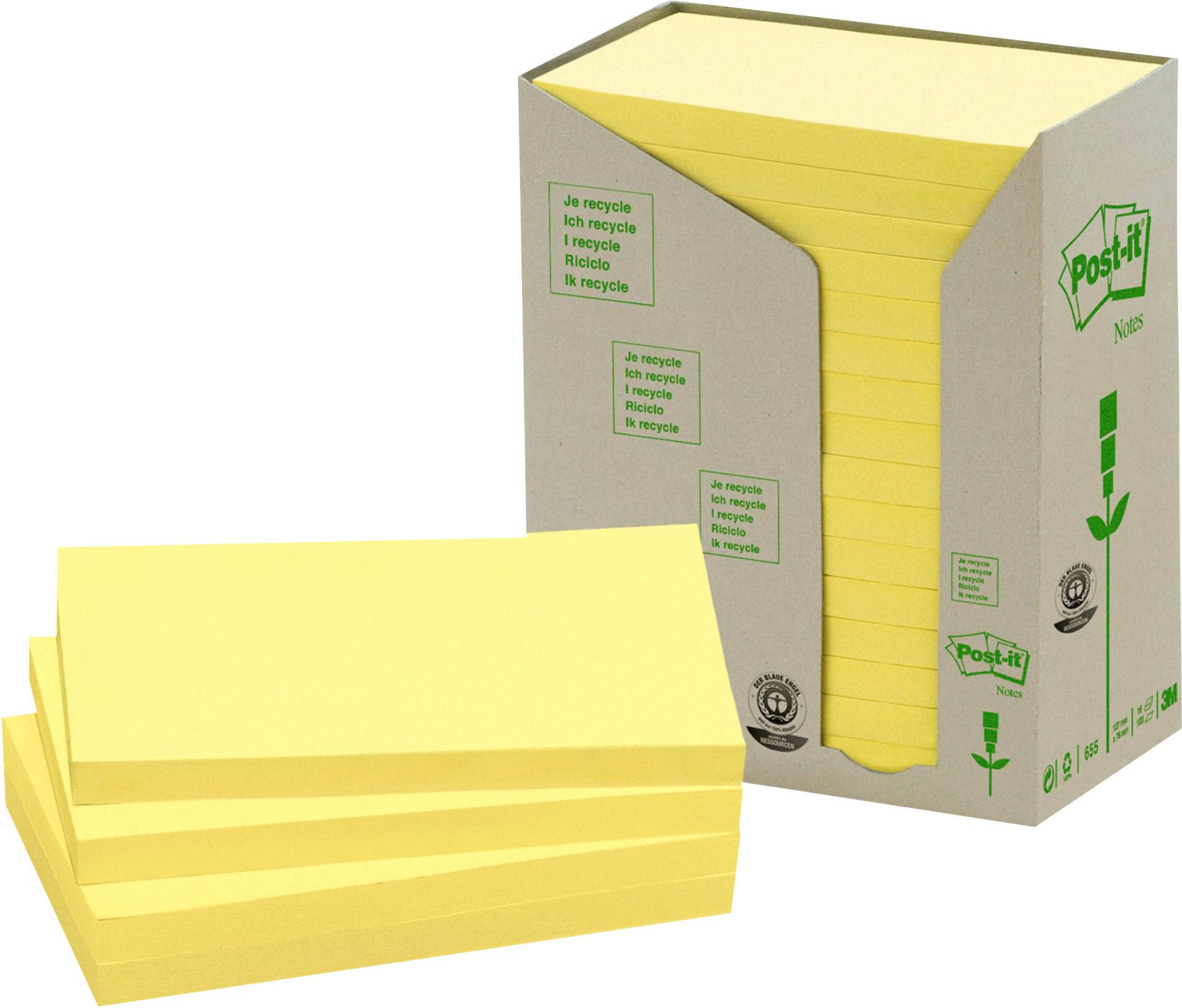 Post-it 655-1T Haftnotiz Recycling Notes Tower, 76 x 127 mm, 80 g, 100 Blatt, 16 Block, gelb (655-1T)