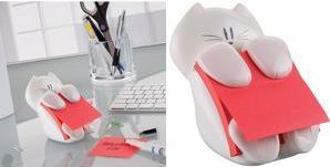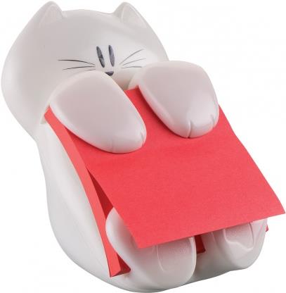 3M Post-it Z-Notes Haftnotizen-Spender, Katzenform, weiß Kunststoff, inkl. 1 Block Super Sticky Z-Notes, 76 x 76 mm, - 1 Stück (Cat-330)