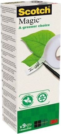 3M Scotch Magic Klebefilm 900, 19 mm x 33 m, 9er-Pack von Hand einreißbar, aufgeklebt unsichtbar, einreißbar, - 9 Stück (90019339)
