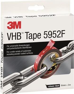 3M VHB Hochleistungsklebeband 5952F, 19 mm x 3 m, schwarz doppelseitig klebend, anpassungsfähig für schwierig zu - 1 Stück (5952193)