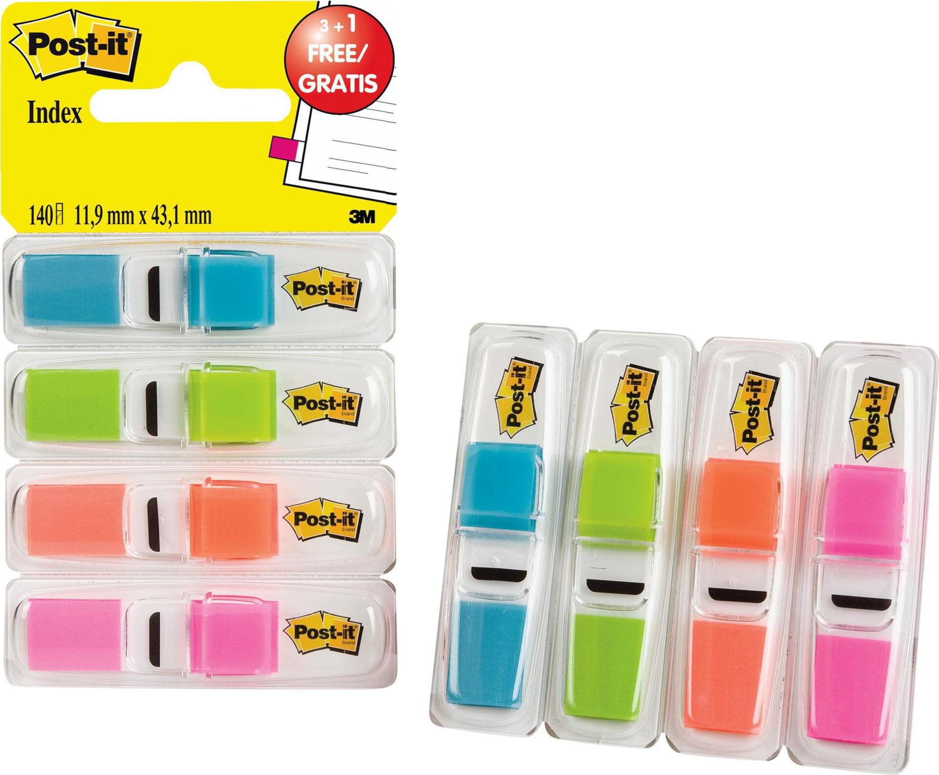 3M Post-it Index Haftstreifen, 11,9 x 43,2 mm, 4 x 35 Marker im praktischen 4er-Einzelspender, 3 + 1 GRATIS - 1 Stück (L1311)