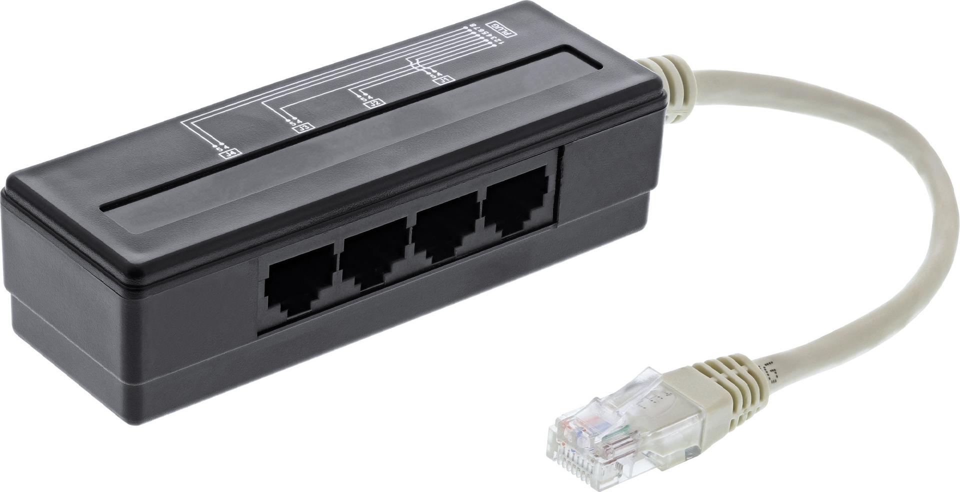 4-fach Telefon Port Splitter - RJ45 Stecker an 4x RJ45 Buchse - 0,15m (69995A)