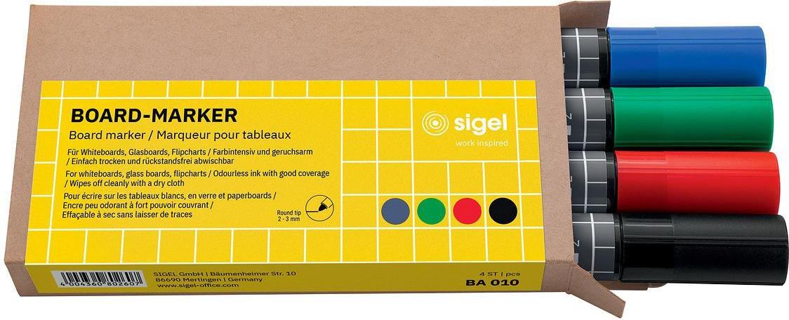 4 SIGEL Whiteboard- und Flipchart-Marker farbsortiert 2,0 - 3.0 mm (BA010)