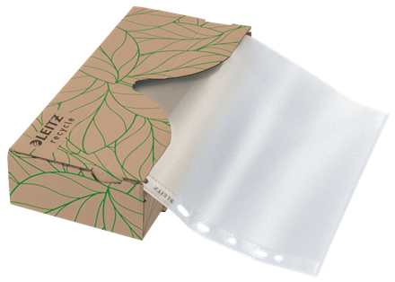 Umweltfreundliche A4-Klarsichthülle in Premiumqualität zum Schutz von Dokumenten unterwegs und zur Organisation von Papieren bei der Arbeit und zu Hause. Der praktische Spender gibt die Plastiktaschen bequem einzeln ab. Die Universallochung mit mehreren Löchern ermöglicht den universellen Einsatz in Ordnern oder Ringbüchern. Hergestellt aus 100 % vor Gebrauch recyceltem Kunststoff (Industrieabfälle-/ Verschnitte bzw. Produktionsreste; extern geprüft und von UL zertifiziert) und zu 100 % recycelbar. Diese robuste und praktische Hülle aus geprägtem Kunststoff ist langlebig und die perfekte Ergänzung zu anderen Produkten aus der Leitz Recycle Serie. Die Spenderbox besteht zu 100 % aus Karton und ist vollständig recycelbar. Modernes und zeitgemäßes umweltfreundliches Schreibtischzubehör, das zu Hause und im Büro großartig aussieht. Mit der neuen umweltfreundlichen Recycle Serie von Leitz helfen Sie, unsere Umwelt zu schützen und sorgen gleichzeitig für ein attraktives und umweltfreundliches Erscheinungsbild Ihres Büros.