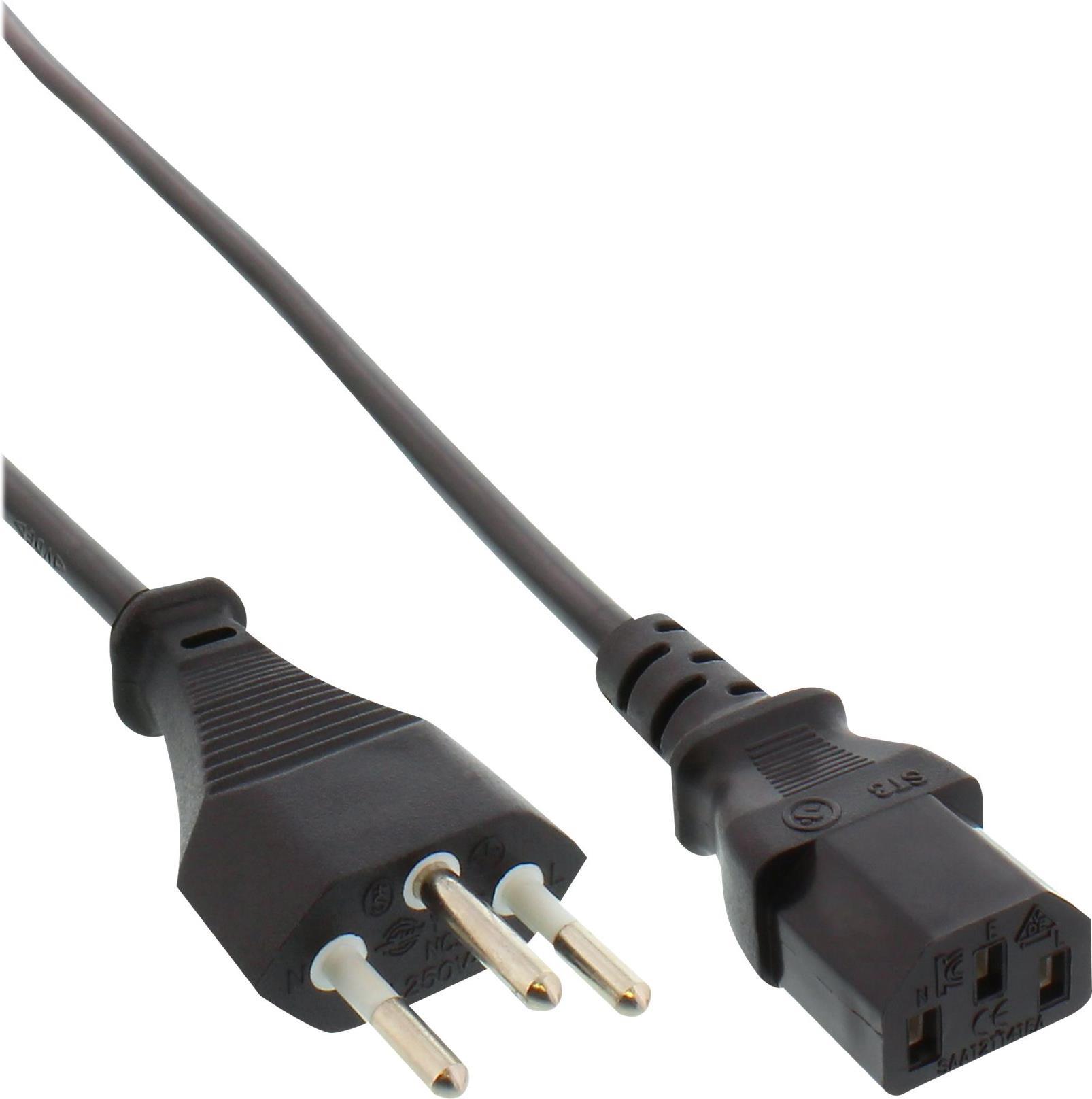 InLine - Stromkabel - SEV 1011 (S) zu power IEC 60320 C13 - Wechselstrom 250 V - 10 A - 1,8m - Schwarz - Schweiz (Packung mit 40) (B-16652C)