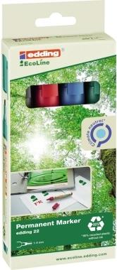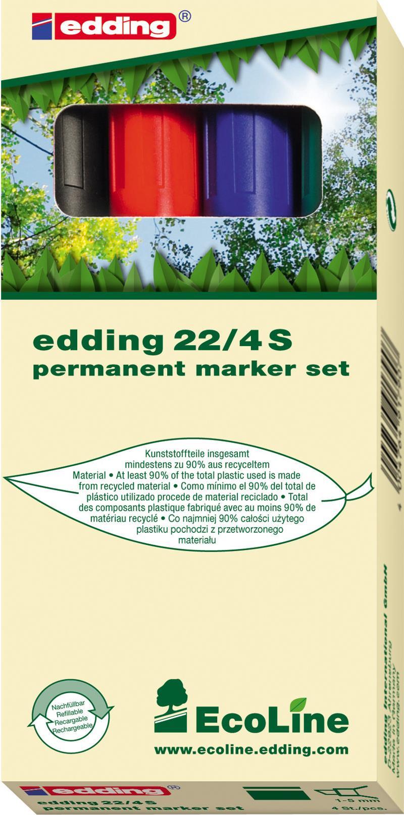 Edding 22 EcoLine - Schwarz - Blau - Grün - Rot - Meißel - Polypropylen (PP) - 1 mm - 5 mm - Karton - Glas - Leder - Metall - Papier - Kunststoff - Holz (4-22-4)