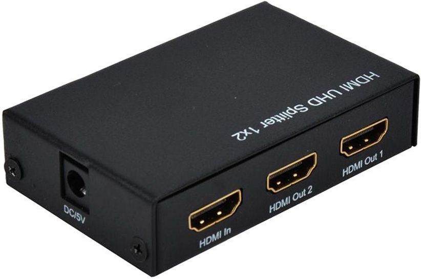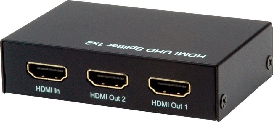 Der ROLINE HDMI-Video-Splitter ermöglicht eine zuverlässige Aufteilung von Bild- und Tonsignalen an bis zu zwei HDMI-Anzeigegeräte ohne jegliche Qualitätsverluste. So können beispielsweise Videoformate von PC oder Notebook auf zwei Endgeräte wie Monitor, Fernseher oder Projektor verteilt werden. Ein Netzadapter für die Stromversorgung ist im Lieferumfang inbegriffen. Das hochwertige Metallgehäuse verbessert die Schirmung der Signale und sorgt für einen absolut störungsfreien Datentransfer. Der ROLINE HDMI-Splitter eignet sich insbesondere für den professionellen Gebrauch, z. B. für Schulungszwecke oder in der Werbung, die in hoher Auflösung mit bis zu 4k erfolgen soll. Es wird keine Software benötigt.Produkttext[/head]Für den Einsatz bei Präsentationen bzw. zu SchulungszweckenAnschlüsse: 1x HDMI Eingang, 2 HDMI AusgängeUnterstützt 480i, 480p, 720i, 720p, 1080i, 1080p, 2160p @60HzUnterstützt 3DEinfache Installation und BedienungEs wird keine Software benötigtSpannungsversorgung 5VDC, 2A[head]Hauptmerkmale