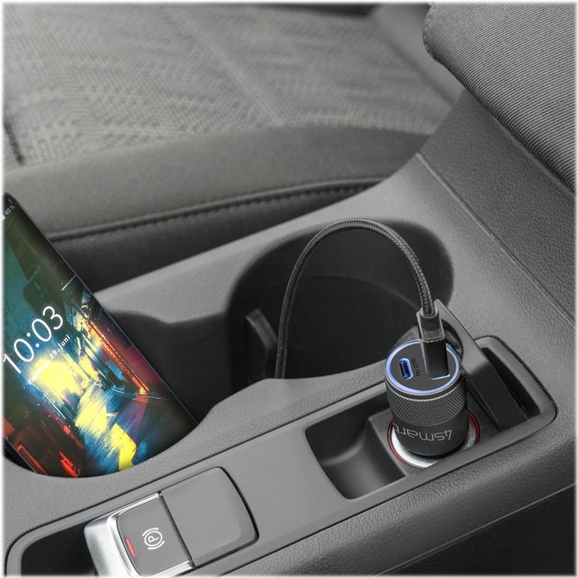 Extraschnelle Ladegeschwindigkeit auch für unterwegs. Dieses duale KFZ-Ladegerät ermöglicht gleichzeitiges, effizientes Laden für Smartphones und Tablets mit Power Delivery und Quick Charge 3.0.