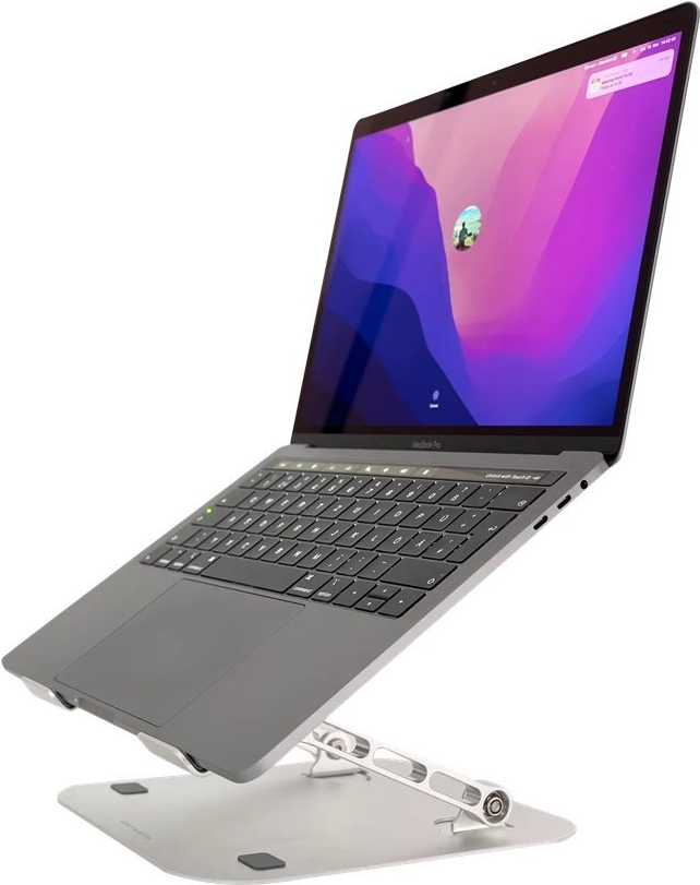 Optimiere deinen Arbeitsplatz mithilfe dieses faltbaren Laptophalters. Einfach entfalten, nach Wunsch den Neigungswinkel einstellen und loslegen. So wird Arbeiten am Laptop bequem.