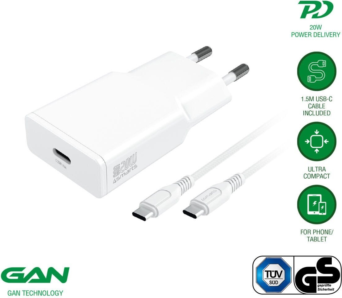 4smarts PDPlug Slim Smartphone - Tablette Weiß AC Schnellladung Drinnen (541121)