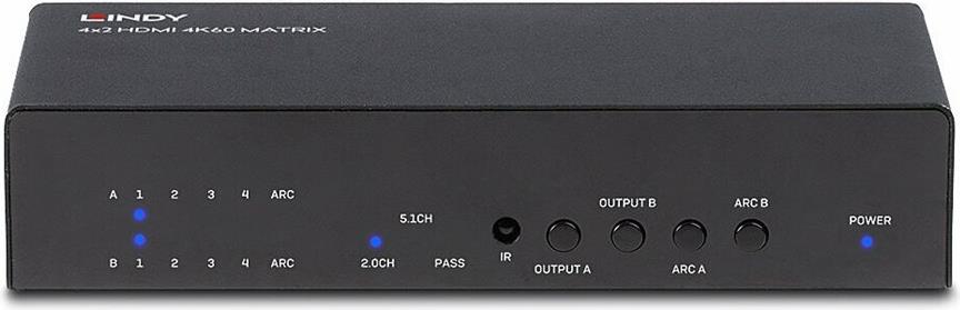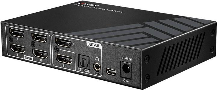 Lindy 4x2 HDMI 4K60 Matrix Zum Anschluss und Umschalten zwischen 4 HDMI-Quellen und 2 HDMI-Displays V2 Version (38084)