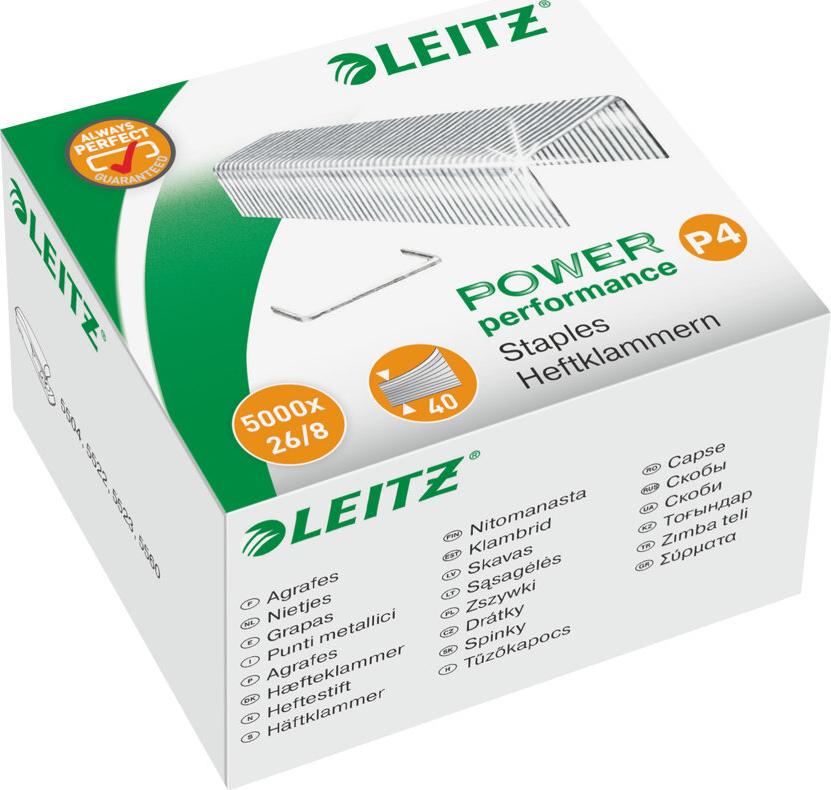 26/8 Heftklammern aus hartem Stahl. Verwendung mit einem Leitz Heftgerät für eine optimale Heftleistung.