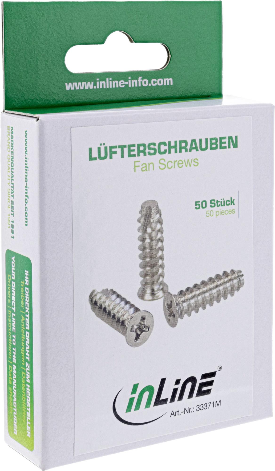 Produkttext[/head]Lüfterschrauben, InLine, 5x16mm, silber, 50 Stück.Pack, bulk.Kreuzschlitz Senkkopf Schraube.zum Befestigen von Gehäuselüftern am PC-Gehäuse.50 Stück in PE-Tüte.[head]Hauptmerkmale