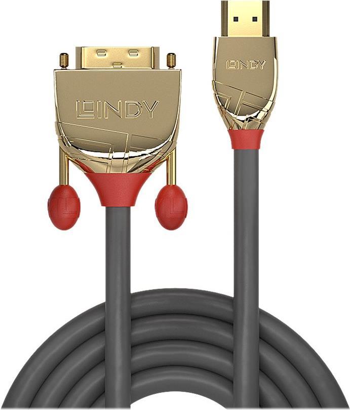 Lindy Gold Line - Videokabel - HDMI / DVI - HDMI (M) bis DVI-D (M) - 5,0m - Dreifachisolierung - Grau (36197)