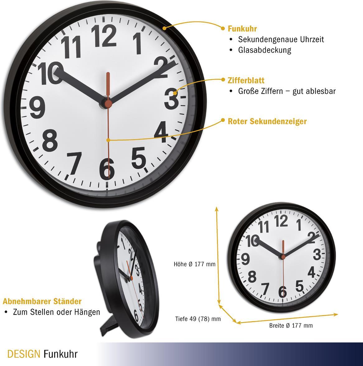 TFA-Dostmann Analoge Funk-Wanduhr - AA - 1,5 V - Schwarz - Weiß - Kunststoff - Glas - 177 mm (60.3538.01)