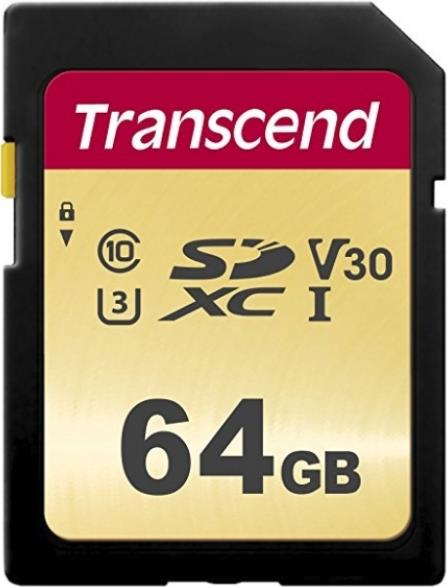 Transcend 500S - Flash-Speicherkarte - 64GB - Video Class V30 / UHS-I U3 / Class10 - SDXC UHS-I (TS64GSDC500S)