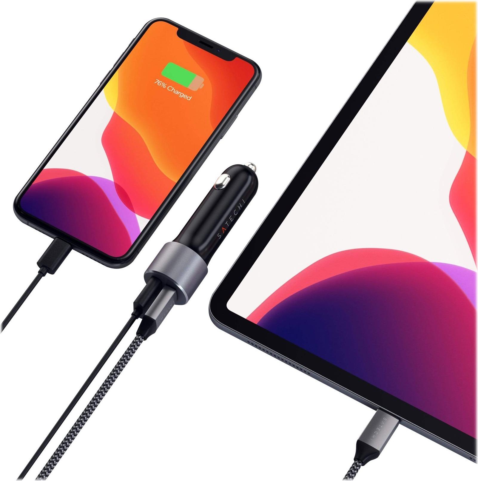 Der Satechi-Autoadapter wurde für alle entwickelt, die unterwegs eine zuverlässige Stromversorgung benötigen. Er liefert insgesamt 72 W und ermöglicht so das effiziente Laden mehrerer Geräte während der Fahrt. Dieser Adapter verfügt sowohl über einen 4-poligen USB-Typ-A- als auch einen 24-poligen USB-C-Ausgang und gewährleistet so Kompatibilität mit einer Vielzahl von Geräten – für Komfort und Flexibilität. Mit Funktionen wie Kurzschluss- und Überhitzungsschutz sorgt er für einen sicheren Betrieb während der Fahrt. Egal, ob Sie ihn für Smartphones, Tablets oder andere Geräte nutzen – dank der Schnellladefunktion mit Power Delivery-Technologie werden Ihre Geräte im Handumdrehen aufgeladen, sodass Sie auch unterwegs immer in Verbindung bleiben.