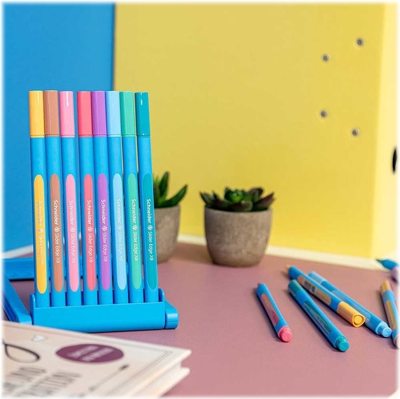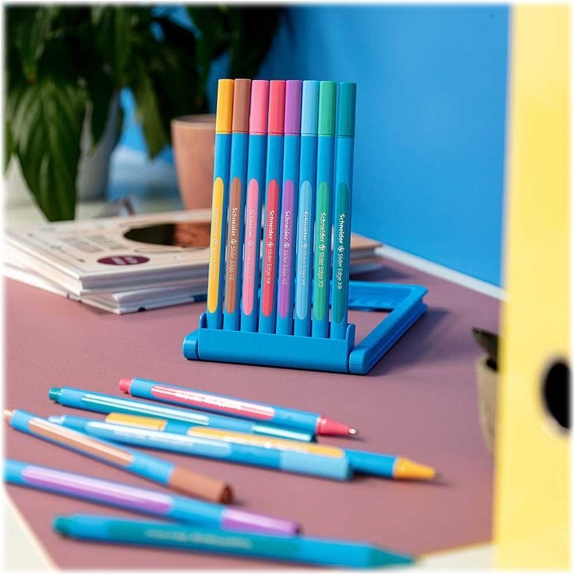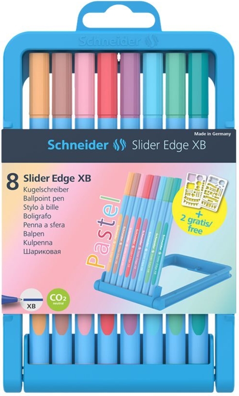 Der moderne Kugelschreiber mit Viscoglide-Technologie ist perfekt für außergewöhnlich leichtes, gleitendes Schreiben. Gummierter Dreikant-Schaft für eine entspannte Schreibhaltung ohne Ermüdung der Hand. Die Kappe ist umsteckbar. Der Slider Edge rollt auf dem Schreibtisch nicht weg und passt durch seine schlanke Form perfekt in die Utensilienschublade oder ins Schülermäppchen.