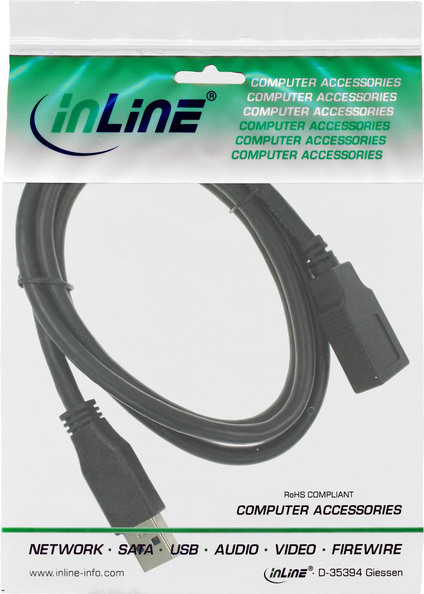 InLine - USB-Verlängerungskabel - USB Typ A (M) zu USB Typ A (W) - USB 3,2 Gen 1 - 1,0m - Schwarz (Packung mit 80) (B-35610)
