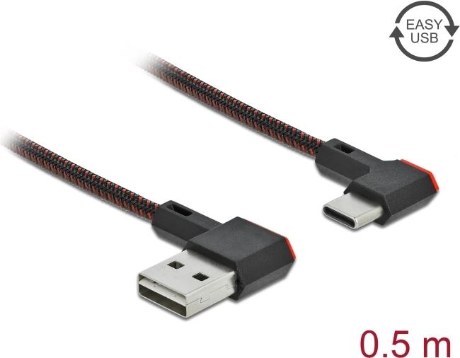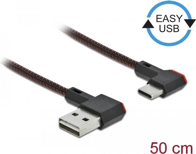 DeLOCK Easy - USB-Kabel - USB (M) links/rechts abgewinkelt, umkehrbar bis USB-C (M) links/rechts abgewinkelt, umkehrbar - 50cm - Schwarz (85280)