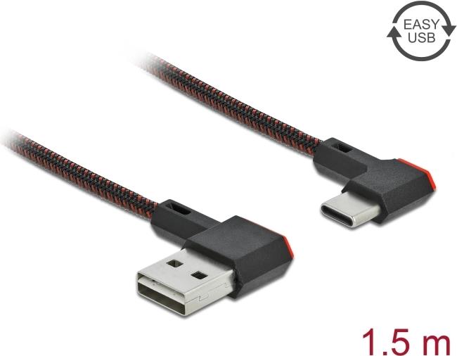 DeLOCK Easy - USB-Kabel - USB (M) links/rechts abgewinkelt, umkehrbar bis USB-C (M) links/rechts abgewinkelt, umkehrbar - 1,5m - Schwarz (85282)