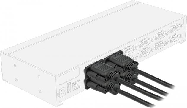 Diese Kabel passen an jeden RS-232 Anschluss, da die mini D-Sub9 Stecker (44 x 33,3 x 15 mm) klein und kompakt sind. Auf diese Weise lassen sich direkt nebeneinanderliegende RS-232 Anschlüsse nutzen.