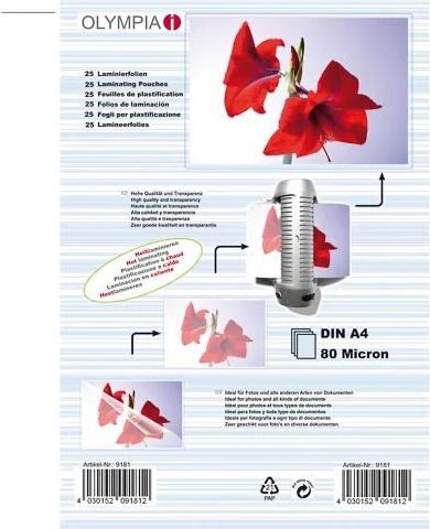 OLYMPIA - Laminiertes Band - 80 Mikron A4 (210 x 297 mm) 25 Stck. (9181)