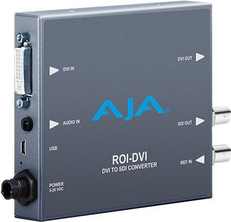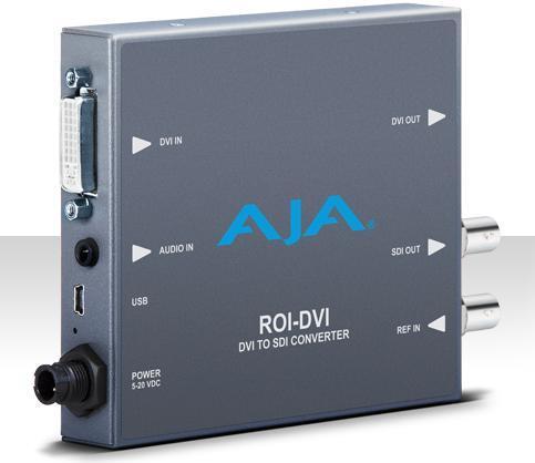 Der ROI DVI Mini-Converter von AJA ermöglicht eine außerordentlich hochwertige Konvertierung von DVI-Ausgängen des Computers in Baseband-Videosignale über SDI. Mit der unglaublichen Bildskalierung und der Bildseiten- und Bildratenkonvertierung erfüllt ROI-DVI die wachsenden Anforderungen zur ordnungsgemäßen Implementierung von Computersignalen in die Videowelt, ohne dabei das Budget oder die Speicherkapazität zu sprengen. ROI-DVI bietet eine Steuerung zur Verwaltung von integriertem und externem Audio. Die Mini-Config-Anwendung ermöglicht Ihnen die interaktive Auswahl interessanter Bereiche des eingehenden DVI-Signals und auch die Steuerung, wie diese Bereiche mithilfe der hochwertigen Skalierungsalgorithmen von AJA auf die Ausgangsauflösung skaliert werden, um die saubere Bildqualität zu erzielen.