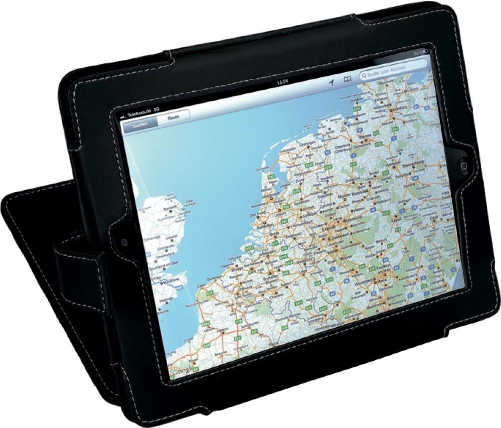 ALASSIO Druckknopfverschluss Tablet PC Fach mit Aufsteller weisse Naehte schwarz Lederimitat ca. 25 x 20 x 2,5 cm (41100)