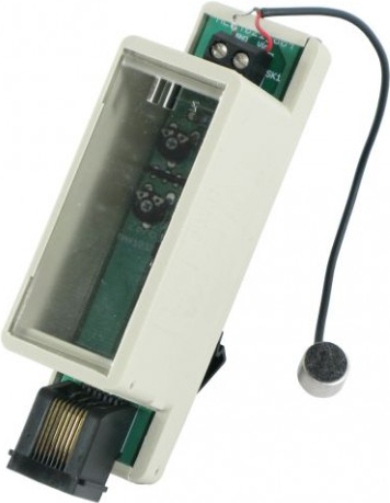 - Registriert laute Geräusche über ein mitgeliefertes Kondensator-Mikrofon, Empfindlichkeit (Schwellwert) über Poti einstellbar