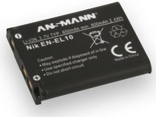 ANSMANN A-Nik EN EL 10 - Kamerabatterie Li-Ion 650 mAh - für Nikon Coolpix S203, S210, S220, S230, S3000, S4000, S5100, S520, S570, S60, S600, S80 (1400-0037)
